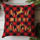 Buffalo Plaid Merry Christmas Reindeer Glitter Cushion