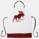 Give your favourite person a custom gift, with this fun festive red, black and white apron, with a buffalo plaid moose, at the top and a black and red chequered buffalo plaid along the bottom hem. Personalise the black text for a great gift idea.