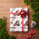 The repeated pattern on this cute Christmas wrapping paper is an image of a brown and white Pit Bull Dog wearing a red and white Santa hat, with a black and red buffalo plaid pillow behind him, and a coordinating gift package with a gold ribbon beside him. There's also a buffalo plaid bow and the matching text that says "JOY". Stylised red and black buffalo plaid text says MERRY CHRISTMAS", and your own signature is in two fields for you to customise.
