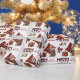 The repeated pattern on this cute Christmas wrapping paper is an image of a red and white Australian Shepherd Dog wearing a Santa hat, with a black and red buffalo plaid pillow behind him, and a coordinating gift package with a gold ribbon beside him. There's also a buffalo plaid bow and the matching text that says "JOY". Stylised red and black buffalo plaid text says MERRY CHRISTMAS", and your own signature is in two fields for you to customise.