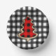 Buffalo Plaid, Red Gingham Christmas Trees Paper Plate