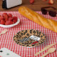 Black and white Buffalo plaid, red and black gingham, leopard print Christmas Trees paper bowls for your Christmas party.