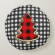 Buffalo Plaid, Red Gingham Christmas Trees Round Cushion
