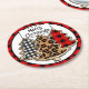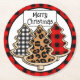 Black and white Buffalo plaid, red and black gingham, leopard print Christmas Trees paper coasters for your Christmas party.