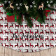 Buffalo Plaid in greys with Buffalo Plaid Reindeers in red and black. Add Family name or other text on the front, the text is an offset style, so the text shows better on the pattern, shown in black lettering with white lettering offset behind the black lettering.