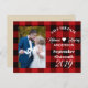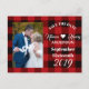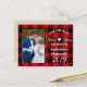red buffalo plaid rustic winter wedding save the date postcards. Vintage lumberjack wedding photo cards.