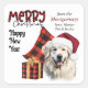This Holiday sticker features a beautiful Great Pyrenees dog wearing a red and white Santa hat. Behind the dog is a red and black buffalo plaid pillow, with a matching gift package beside it. Buffalo plaid typography pairs with black script to say "MERRY Christmas", with "Happy New Year" below that. Your custom signature is in two easy to change text fields. Perfect as an envelope sealer for your Holiday correspondence or to decorate packages.