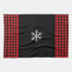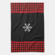 This kitchen towel is shown in a cute black and red buffalo plaid snowflake print design.