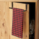 This kitchen towel is shown in a cute black and red buffalo plaid print design.