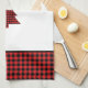 This kitchen towel is shown in a cute black and red buffalo plaid Christmas tree print design.