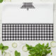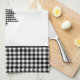 This kitchen towel is shown in a cute black and white buffalo plaid Christmas tree print design.