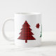 This ceramic jumbo coffee mug is shown with a cute buffalo plaid trees print.