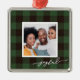 Forest green buffalo plaid with joyful script photo Christmas Ornament.