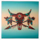 Brighten Your Home with this Unique "One of a Kind" Buffalo Skull And Arrows Ceramic Tile! It Features a Native American Buffalo Skull And Arrows with Feathers on a Turquoise and Orange Background!