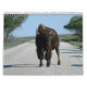 A buffalo proudly stands in the middle of the road, daring you to try to pass by.