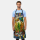 Vegetables - ear of corn, cucumber and carrot - running for their lives in the garden to escape a bug attack but getting eaten is inevitable on this kitchen apron for men or women, perfect for looking awesome when cooking in the kitchen or at the grill.