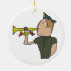 Bugle design shows a bugler playing the Last Post as a mark of respect to lost colleagues. Serviceman in uniform plays bugle or trumpet with red ribbons.