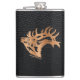 This Unique "One of a Kind" Bull Elk Flask! It Features a Bugling Bull Elk Wood Silhouette on a Black Leather Background!