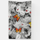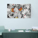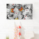 Digital art springtime nature scene with butterflies and ladybugs on a black and white nature background.
