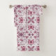 Bugs, dark magenta and pink on white bath towel set