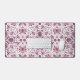 Bugs, dark magenta and pink on white desk mat
