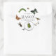 This cute and vintage "we're bugging out" boy's birthday birthday stsicker features a magnifying glass, bugs and insects such as butterflies, a bee, beetle, worm/larva, and dragonfly on a white background. Personalise it for your needs. You can find more matching products at my store.