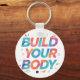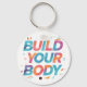 The t-shirt features a bold, minimalist design with the phrase "Build Your Body" written in a large, sans-serif font. The letters are stacked on top of each other, creating a sense of movement and momentum. The background is a simple, light blue colour, which helps to highlight the text. The overall design is clean and modern, with a strong focus on the message.