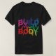 The eye-catching t-shirt design features the phrase "Build Your Body" in a burst of colour. Each letter is a different vibrant shade, creating a dynamic and motivational statement. The design avoids any images of people, keeping the focus purely on the empowering message.