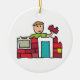 Builder Builds House with Building Blocks Ceramic Tree Decoration
