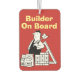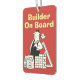 Gift for a Builder. Builder's Car or Builder's Van Air Freshener. A Builder is standing with various building materials. Red background.