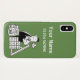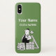 Builder phone case design. Add your choice of name and number. Builder theme cartoon with green background. Phone case for a builder or construction worker.