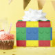 A colourful building block pattern showing the four different main colours of building blocks blue, green, red and yellow.