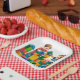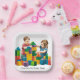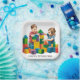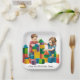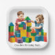Two young children joyfully construct colourful block towers together at a vibrant birthday party. Surrounded by an array of shapes and hues, they share laughter and creativity, making memories through imaginative play.