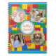 This colourful personalised notebook features a variety of fun and lively primary colours over a toy construction building blocks background.