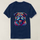 I give wanted to give this a 4 instead of a 5 because these Basic DARK T0shirts run unexpectedly SLIM or Narrow. Which is great if you do not have a potbelly, but I have a paunch. It isn't the shirt's fault that I've got a beer belly. The design and shirt itself is a quality cotton shirt. The color is more of a deep purple, but still a very pretty color. The Basic DARK T-shirts run a bit SLIMMER than the Basic Ts. The neck is a fraction narrower (or seems to be narrower) also. I'm a paunchy middle-aged woman and my neck is 12 inches (31cm) thick and the neckline fell about the same as in the photo of the man, and I had the desire to tug it a bit. So if you're a thick necked man or like loose shirts, be aware these are slimmer shirts. Once I get rid of my lockdown paunch it'll look great. The shirt washed well in cold water with no apparent bleeding. We don't have a dryer, so it hung dry. Did not shrink. Love the colors and the design. The design looks smaller on my shirt than it does on the model on-line. But still, it looks good on the shirt. The printing looks as it does on the model, just the size seems fractionally smaller. Washed garment in cold water, hung dry and design appeared unaffected.