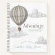 This boho chic "Adventure Awaits" boy's baby shower guest book/notebook features a blue hot air balloon and clouds. The reverse side features a baby blue background with star patterns. Personalize it for your needs. You can find matching products at my store.