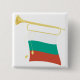 Pin your patriotism with this unique Bulgarian flag button. The design features a golden bugle with the national banner in the traditional white, green, and red colors. This small but impactful accessory is perfect for jacket lapels, backpacks, hats, or lanyards. A great, inexpensive way to show your love for Bulgaria, commemorate a national holiday, or share your Eastern European heritage. Collectible and proud Bulgarian insignia.