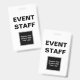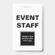 Special event staff ID badges that include a logo template on both sides you can replace with your company or event logo and graphic. Designed for corporate, party, concert, or convention staff and security.