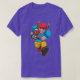 I give wanted to give this a 4 instead of a 5 because these Basic DARK T0shirts run unexpectedly SLIM or Narrow. Which is great if you do not have a potbelly, but I have a paunch. It isn't the shirt's fault that I've got a beer belly. The design and shirt itself is a quality cotton shirt. The color is more of a deep purple, but still a very pretty color. The Basic DARK T-shirts run a bit SLIMMER than the Basic Ts. The neck is a fraction narrower (or seems to be narrower) also. I'm a paunchy middle-aged woman and my neck is 12 inches (31cm) thick and the neckline fell about the same as in the photo of the man, and I had the desire to tug it a bit. So if you're a thick necked man or like loose shirts, be aware these are slimmer shirts. Once I get rid of my lockdown paunch it'll look great. The shirt washed well in cold water with no apparent bleeding. We don't have a dryer, so it hung dry. Did not shrink. Love the colors and the design. The design looks smaller on my shirt than it does on the model on-line. But still, it looks good on the shirt. The printing looks as it does on the model, just the size seems fractionally smaller. Washed garment in cold water, hung dry and design appeared unaffected.