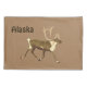 A sepia-toned image of a bull caribou, or reindeer. Customisable text reading "Alaska" also appears. The caribou (Rangifer tarandus), known as the reindeer outside of North America, is a deer of the Arctic and Subarctic. While overall widespread and numerous, some subspecies are rare and one has gone extinct. The Inuit word tuktu means - deer that never stops moving. Caribou are always on the move, going north to calve, heading for the winter grounds, and south in the summer. Caribou considerably in colour and size. Uniquely among deer, both genders grow antlers, though these are larger in the males and there are a few populations where females lack them completely. Caribou hunting and herding of semi-domesticated reindeer (for meat, hides, antlers, milk and transportation) are important to several Arctic and Subarctic people. Even far outside its range, the caribou/reindeer is well known due to the myth, probably originating in early 19th century America, in which Santa Claus's sleigh is pulled by flying reindeer, a popular secular element of Christmas. In actual Lapland, reindeer would pull a pulk. Distribution and habitat The caribou/reindeer is a widespread and numerous species in the northern Holarctic, being present in both tundra and taiga (boreal forest). It was originally was found in Scandinavia, eastern Europe, Russia, Mongolia, and northern China north of the 50th latitude. In North America, it was found in Canada, Alaska (USA), and the northern conterminous USA from Washington to Maine. In the 19th century, it was apparently still present in southern Idaho. It also occurred naturally on Sakhalin, Greenland, and probably even in historical times in Ireland. During the late Pleistocene era, reindeer were found as far south as Nevada and Tennessee in North America and Spain in Europe.Today, then species has disappeared from many areas within this large historical range, especially from the southern parts, where it vanished almost everywhere. Large populations are still found in Norway, the Markku region of Finland, Sweden, Siberia, Greenland, Alaska, and Canada. Domesticated reindeer are mostly found in northern Fennoscandia and Russia, with a herd of approximately 150-170 reindeer living around the Cairngorms region in Scotland. The last remaining wild tundra reindeer in Europe are found in portions of southern Norway. A few reindeer from Norway were introduced to the South Atlantic island of South Georgia in the beginning of the 20th century. Today, there are two distinct herds still thriving there, permanently separated by glaciers. Their total numbers are no more than a few thousand. The flag and the coat of arms of the territory contain an image of a reindeer. Around 4000 reindeer have been introduced into the French sub-Antarctic archipelago of Kerguelen Islands. East Iceland has a small herd of about 2500–3000 animals. Caribou and reindeer numbers have fluctuated historically, but many herds are in decline across their range. This global decline is linked to climate change for northern, migratory caribou and reindeer herds and industrial disturbance of caribou habitat for sedentary, non-migratory herds. Fur Fur colour varies considerably, both individually, and depending on season and subspecies. Northern populations, which usually are relatively small, are whiter, while southern populations, which typically are relatively large, are darker. This can be seen well in North America, where the northermost subspecies, the Peary Caribou, is the whitest and smallest subspecies of the continent, while the southermost subspecies, the Woodland Caribou, is the darkest and largest. The coat has two layers of fur, a dense woolly undercoat and longer-haired overcoat consisting of hollow, air-filled hairs. Antlers Reindeer antlers grow again each year under a layer of fur called velvet. In most populations both sexes grow antlers, which (in the Scandinavian variety) for old males fall off in December, for young males in the early spring, and for females in the summer. The antlers typically have two separate groups of points, a lower and upper. Domesticated reindeer are shorter-legged and heavier than their wild counterparts. There is considerable subspecific variation in the size of the antlers (e.g., rather small and spindly in the northernmost subspecies), but in some subspecies the bull reindeer's antlers are the second largest of any extant deer, after the moose, and can range up to 39 inches (100 cm) in width and 53 inches (135 cm) in beam length. They have the largest antlers relative to body size among deer.Antler size plays a significant role in establishing group hierarchy. Nose and hooves Reindeer have specialised noses featuring nasal turbinate bones that dramatically increase the surface area within the nostrils. Incoming cold air is warmed by the animal's body heat before entering the lungs, and water is condensed from the expired air and captured before the deer's breath is exhaled, used to moisten dry incoming air and possibly absorbed into the blood through the mucous membranes. Reindeer hooves adapt to the season: in the summer, when the tundra is soft and wet, the footpads become sponge-like and provide extra traction. In the winter, the pads shrink and tighten, exposing the rim of the hoof, which cuts into the ice and crusted snow to keep it from slipping. This also enables them to dig down (an activity known as "cratering") through the snow to their favourite food, a lichen known as reindeer moss. The knees of many species of reindeer are adapted to produce a clicking sound as they walk. Diet Reindeer are ruminants, having a four-chambered stomach. They rely primarily on lichens in winter, especially reindeer moss. However, they also eat the leaves of willows and birches, as well as sedges and grasses. There is some evidence to suggest that on occasion, they will also feed on lemmings, arctic char, and bird eggs. Reindeer herded by the Chukchis have been known to