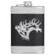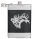 This Unique "One of a Kind" Bull Elk Flask! It Features a Silver Bugling Bull Elk Silhouette on a Black Leather Background...Surrounded