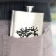 This Unique "One of a Kind" Bull Elk Flask! It Features a Black Bugling Bull Elk Silhouette on A Silver Background!