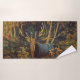 A big bull elk sporting large trophy antlers during the autumn rut. An elk hunter's dream! Fall colours on the surrounding forest trees create the perfect natural wilderness setting for this favourite North American big game animal. Realistic artwork created from an original oil painting by wildlife and equine artist Crista S. Forest.