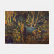 A big bull elk sporting large trophy antlers during the autumn rut. An elk hunter's dream! Fall colours on the surrounding forest trees create the perfect natural wilderness setting for this favourite North American big game animal. Realistic artwork created from an original oil painting by wildlife and equine artist Crista S. Forest.