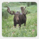 Bull moose Alces alces) in wildflowers, Square Sticker