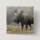 Bull moose in snowstorm with aspen trees 15 cm square badge