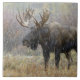 Bull moose in snowstorm with aspen trees tile
