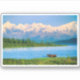 Wonder Lake, Bull moose feeds on vegetation, Alaska mountains in the distance, Denali National Park, Alaska