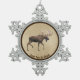 Bull Moose On Old Paper Snowflake Pewter Christmas Ornament