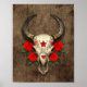 Bull Sugar Skull with Red Roses on Wood Graphic Poster